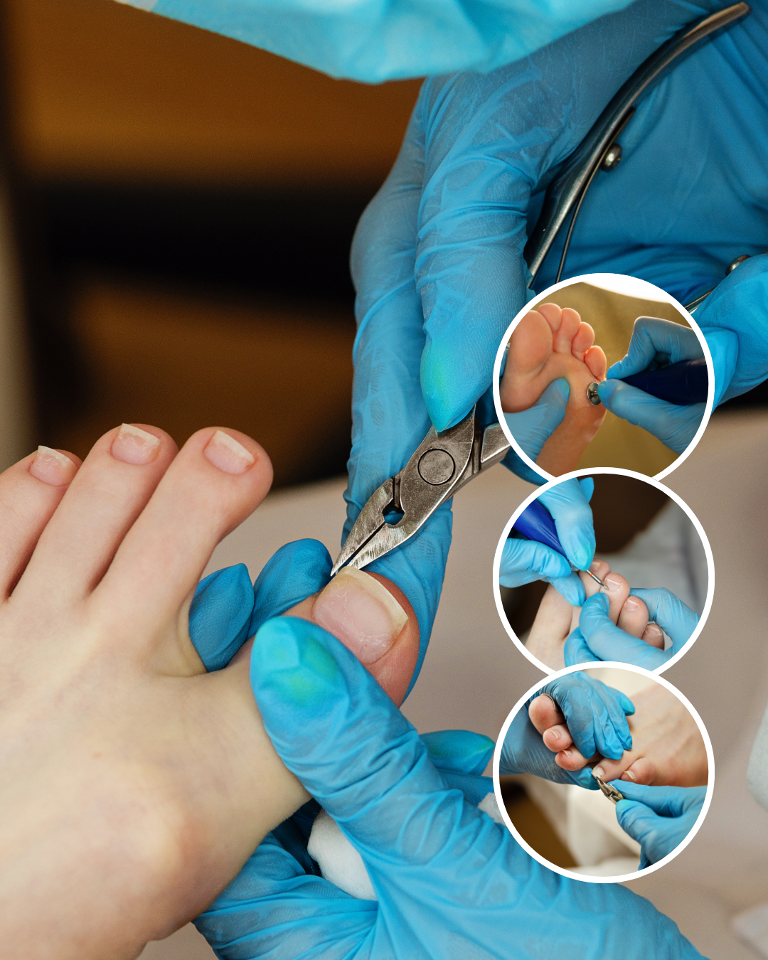En tu primera consulta, el podólogo recopila tu historial, examina tus pies para tratar uñas, callos e infecciones, ajusta plantillas u ortesis y brinda masajes y consejos de cuidado.